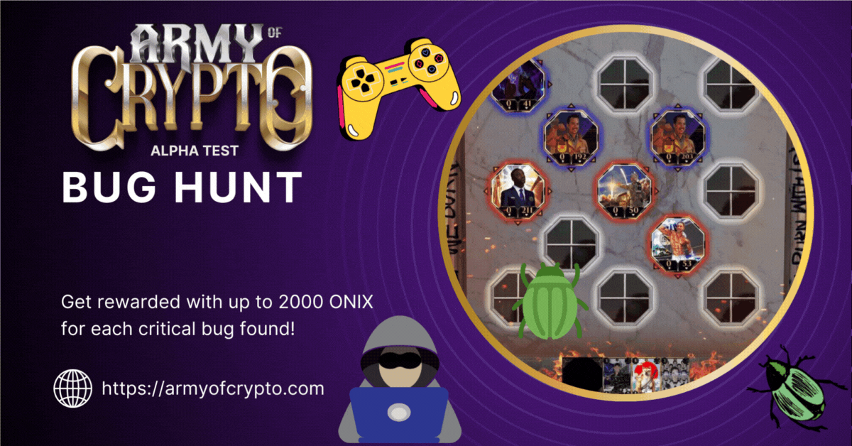 In the bug hunt for Army of Crypto, we're excited to offer rewarding opportunities for your contributions. Every legitimate bug reported on our Forums will be awarded with 250 ONIX, our native cryptocurrency. We value your input and appreciate your efforts in helping us improve the game.
