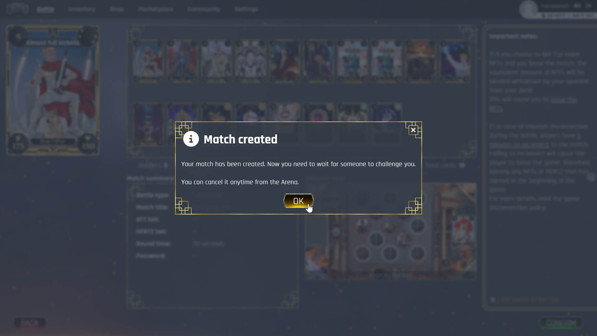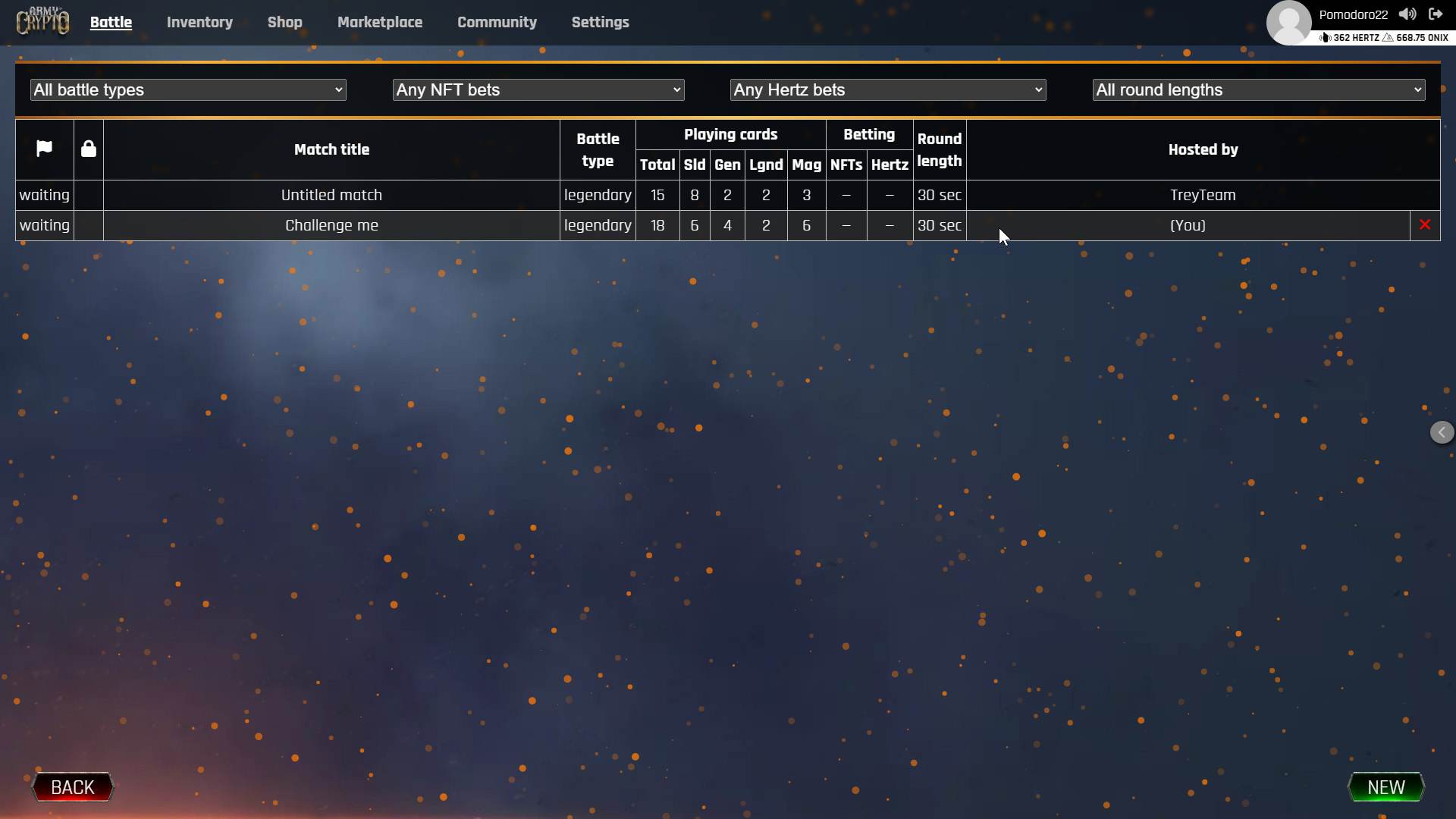 Now battles can be created, and the listing in the lobby shows created battles as soon as they kick in: