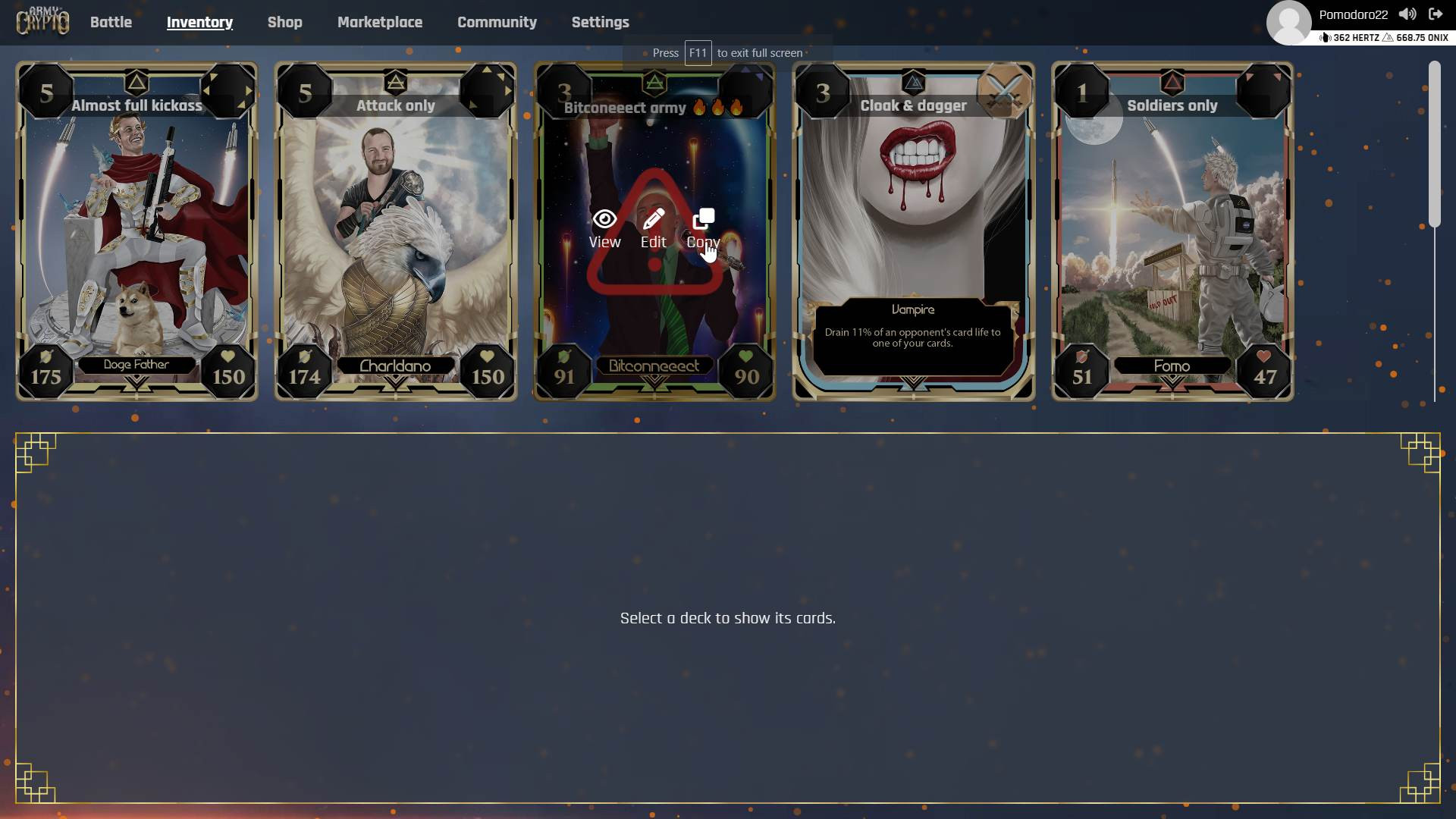 Cards used on the minigame are locked individually, and they show as locked when included in decks, rendering decks unusable for standard game matches.
