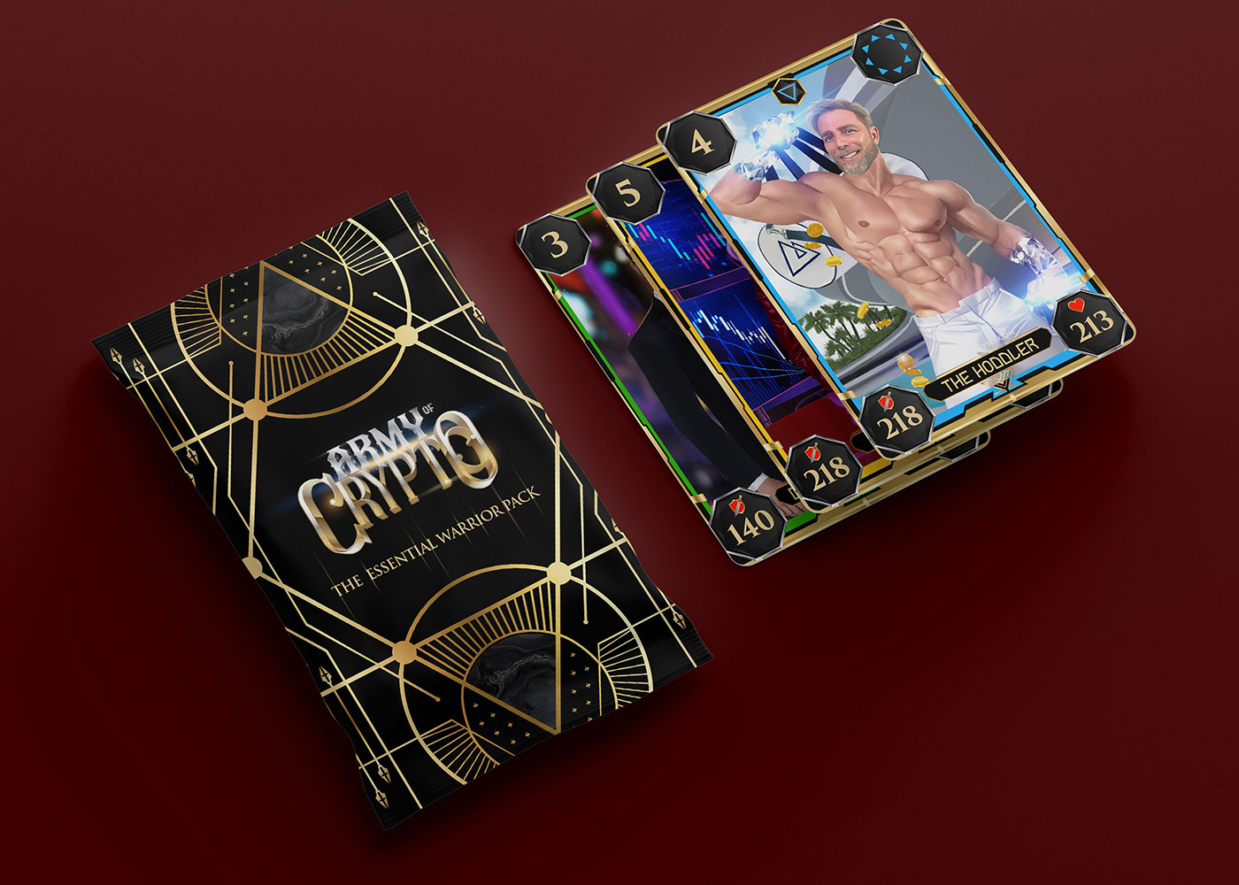 Purchase your Essential pack and start collecting your NFT cards. This pack contains 14 cards which will allow you to play the Army of Crypto, battle with your friends and place bets.