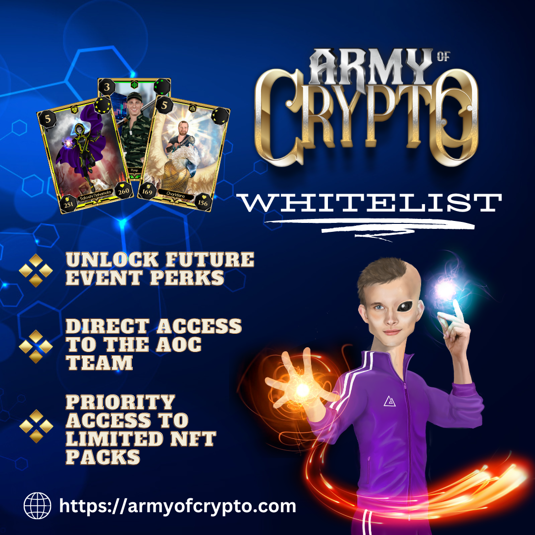 Direct Access to the AOC Team: Dive deeper into the secrets of our game with direct access to the Army of Crypto Team! Engage in lively discussions, receive first-hand updates, and forge lasting friendships with fellow whitelist members.